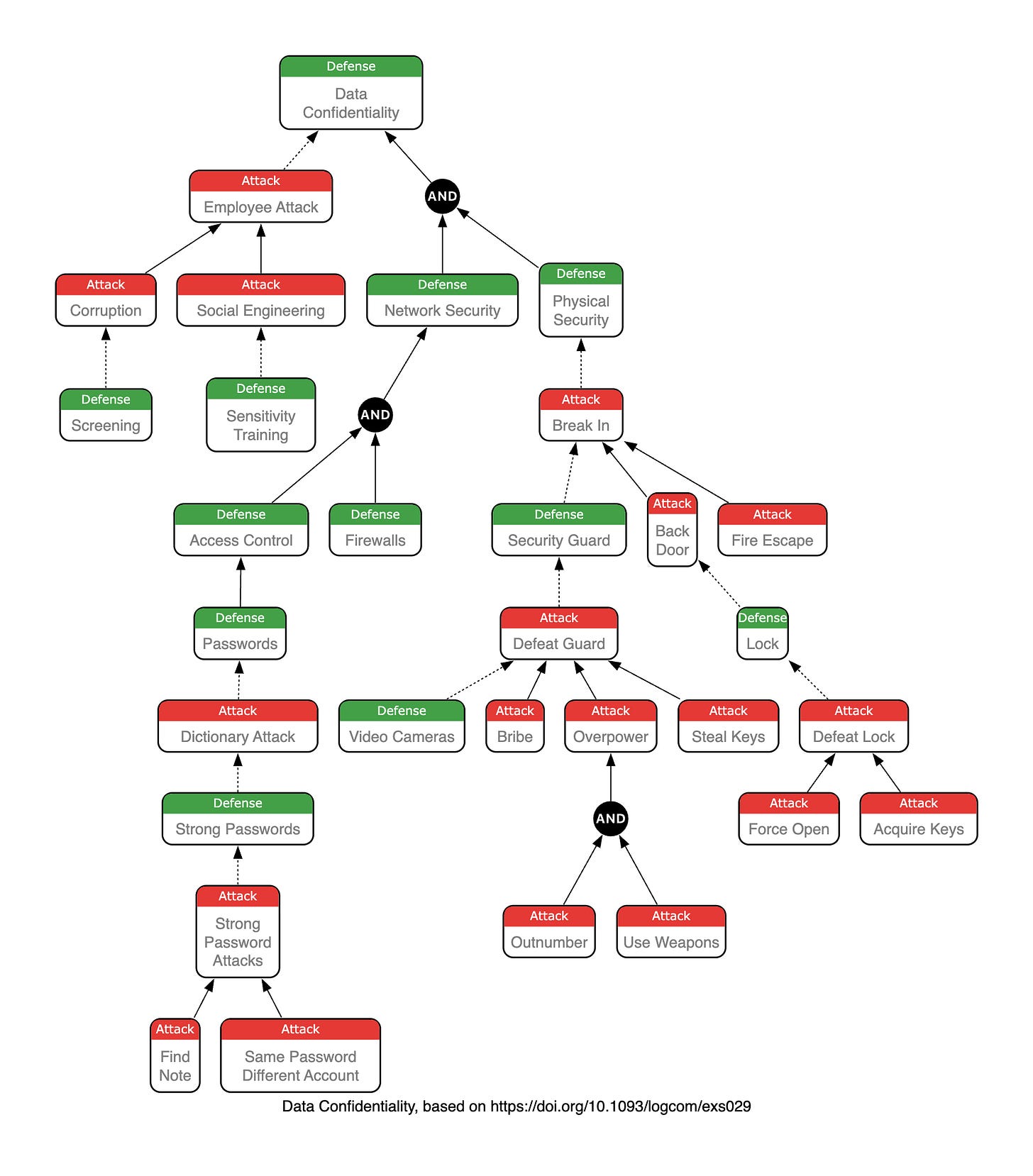 You’re doing threat modelling during design. Before building a system, you can map out anticipated attacks, plan defences, and then stress-test those defences by asking “how could an attacker get around this?” — the tree naturally supports this recursive thinking.